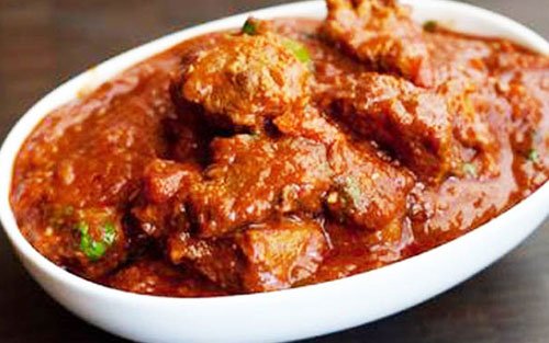 Marinated boneless chicken cooked in chicken mince and onion tomato masala